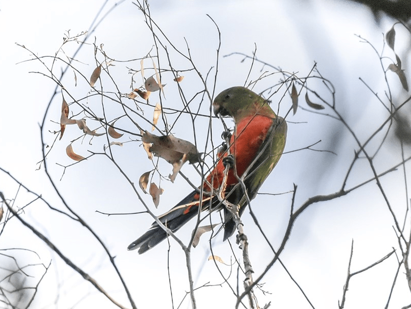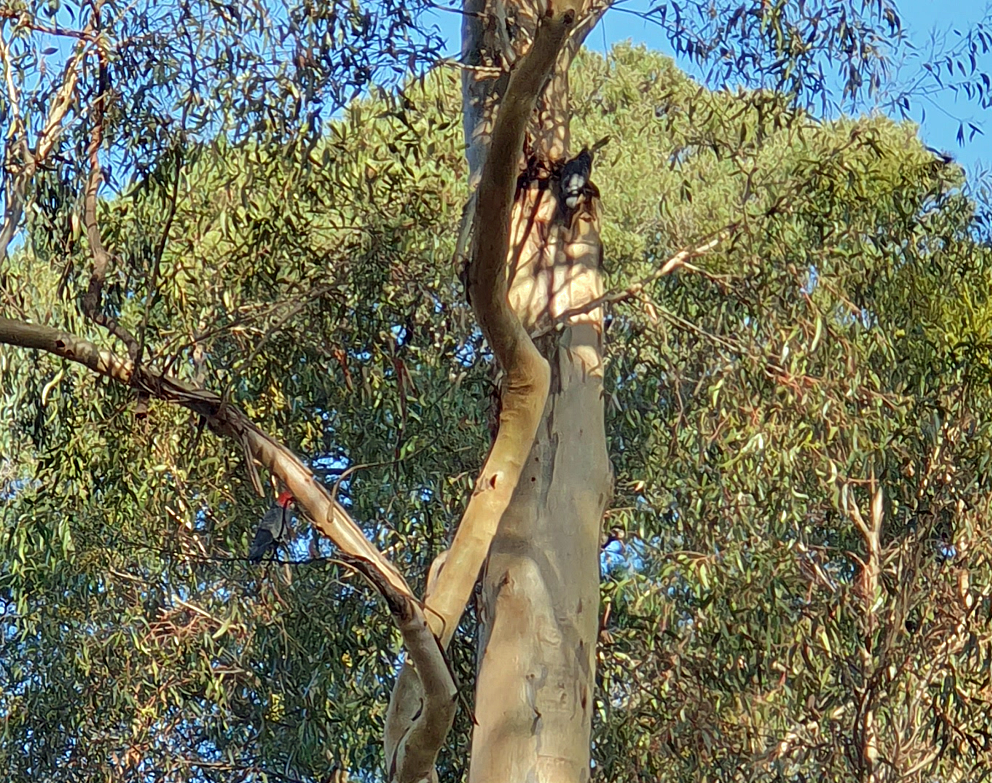 Gang-gangs (Creaky Doors in Canberra-speak) continue to be seen/heard in the “Bellbird Area” – they especially seem to like drinking from rainwater collecting in tree hollows. This photo comes from an Acacia Ave garden after the recent good rains: