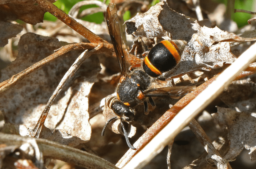 - Potter wasp (Paralastor sp): they build mud nests for their larvae which they feed with paralysed caterpillars. The adults drink nectar.
