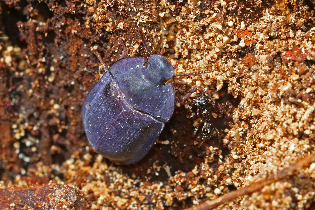 - Blue Pie-dish Beetle (Genus Pterohelaeus): Pie-dish Beetles are only found in Australia. They are usually found under loose bark on Gum trees. They mainly feed on decaying vegetation and animal dung.
