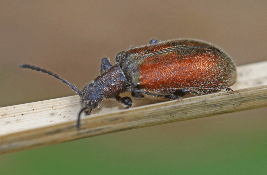- Brown Darkling Beetle (Ecnolagria grandis): three pics of a Brown Darkling Beetle, a very common small beetle in late summer. Their larvae feed on detritus such as dead leaves.