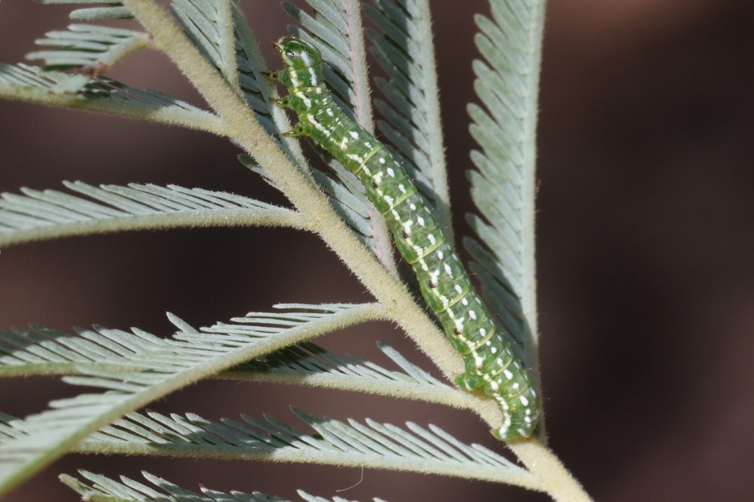 - Dashed GeometridMoth caterpillar (Dissomorphia australiaria): the caterpillars of this common small moth feed mainly on local Wattle leaves.