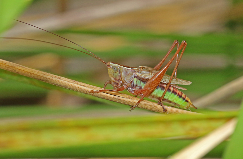 - Meadow Katydid (Conocephalus sp.): a common insect, often mistaken for a Grasshopper. They are a plant eater.