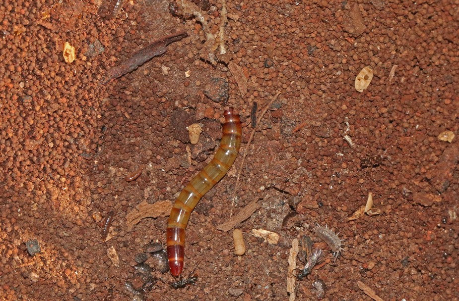 - Darkling beetle larva (Meneristes australis): a member of the large group of beetles known as Darkling beetles. The larvae can often be found under partially rotten logs.