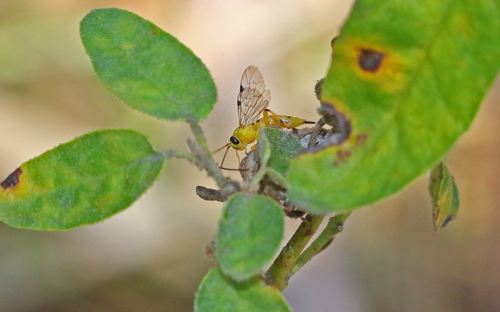 - Yellow-banded Leafroller Parasitoid Wasp (Xanthopimpla rhopaloceros): these small wasps prey on the caterpillars of a number of small ‘leaf roller’ moths, and can therefore be helpful in pest control.