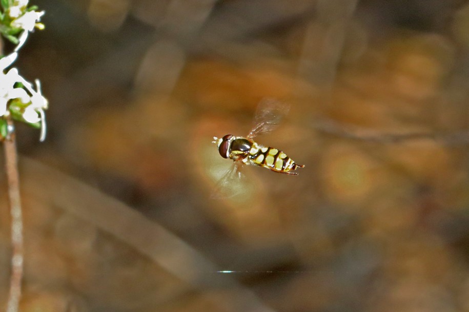 - Yellow-shouldered Stout Hover Fly (Simosyrphus grandicornis): these small little flies not only look like bees, but they are also very important pollinators of many local native plants. Their larvae prey on aphids.