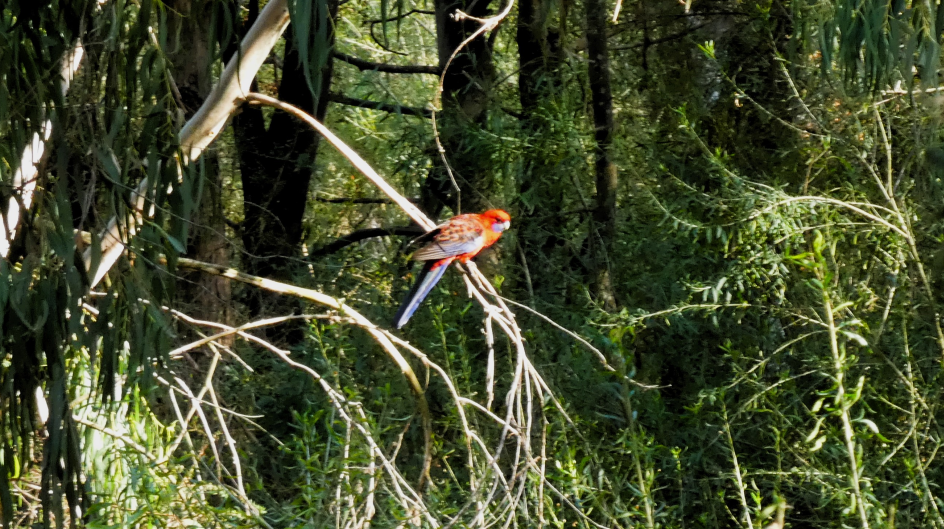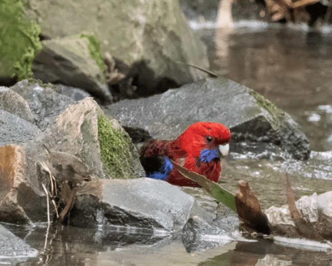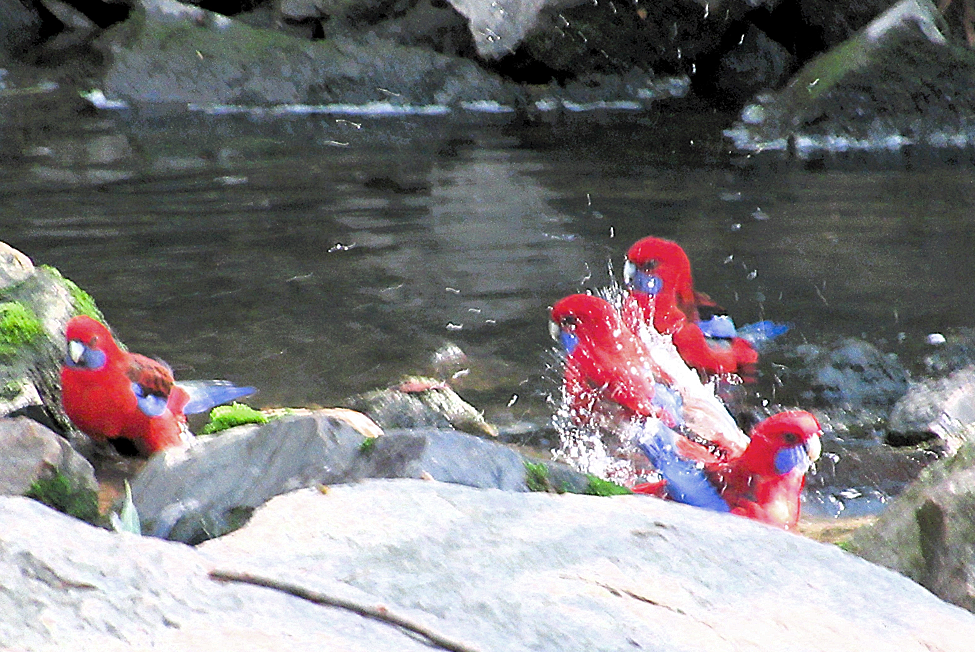 Russell’s grandson Harry (Grade 5) took this charming action photo of Crimson Rosellas enjoying a communal bath and shower in the creek during the monthly bird survey on 9th April (during the school holidays).