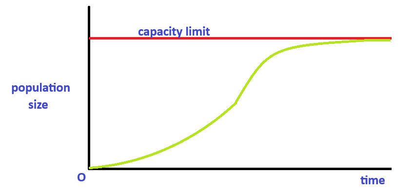 In stable environments like our Blackburn Creeklands, populations of birds we commonly see probably have naturally “maxed out” over time to reasonably stable populations. Populations start to rise exponentially but then tend to flatten out to their limit due to competition, predation etc – something like the green line below – unless something drastic (eg a bushfire) happens: