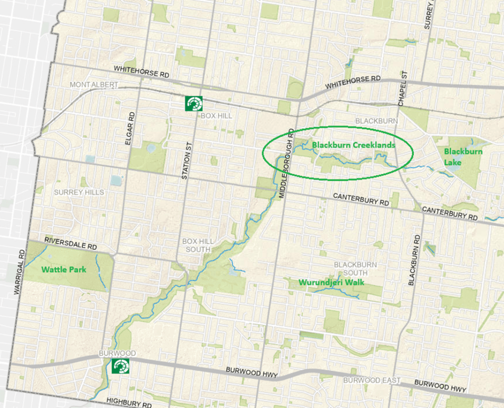 In good news for the park, SRL funding will improve the canopy throughout the Gardiners Creek Corridor – and 110 new canopy trees are proposed for the Blackburn Creeklands.