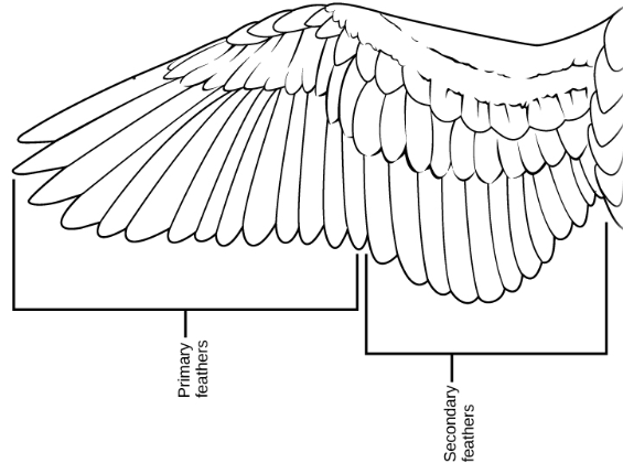 In bird wing feathers, primaries are the outer flight feathers attached to the “hand” bones – providing steering and thrust. Secondaries are the inner flight feathers, attached to the “forearm” bones – providing lift and stability.