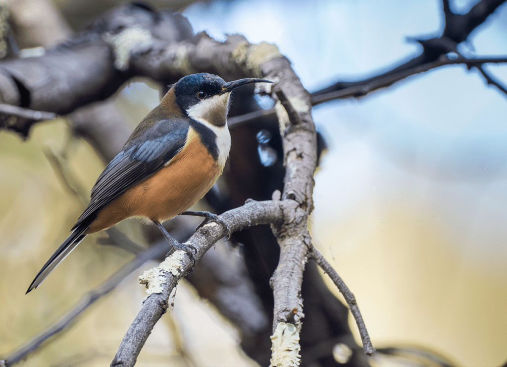 Silvereyes are omnivorous having a diet that includes insects, spiders, fruit and nectar. Not liking open grasslands, they live in forest, scrub, urban gardens and horticultural areas. They are migratory – often heading north over winter – like those who can in our community! The Tasmanian birds actually fly across Bass Strait to reach sunnier climes – not bad for a 10-15 gram bird!