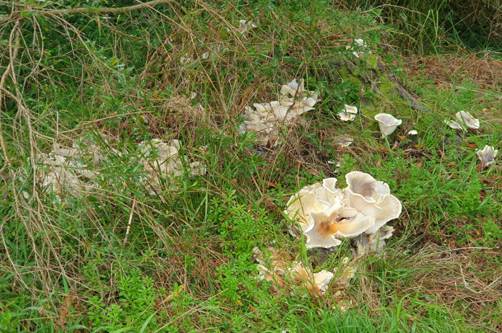 Despite the dryness, recent rains have help trigger fungal growth. We came across a “haunting” of Ghost Fungus (Omphalotus nidiformis) in the last week of May: