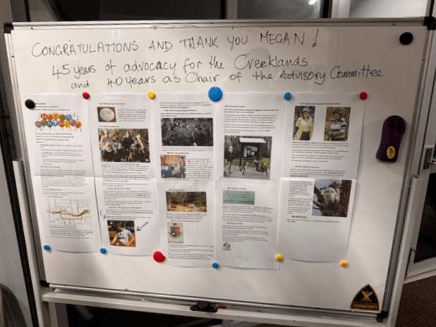 One volunteer’s contribution of note is that our Chair, Megan Short, who recently clocked up 40 years as Chair of the Blackburn Creeklands Advisory Committee.