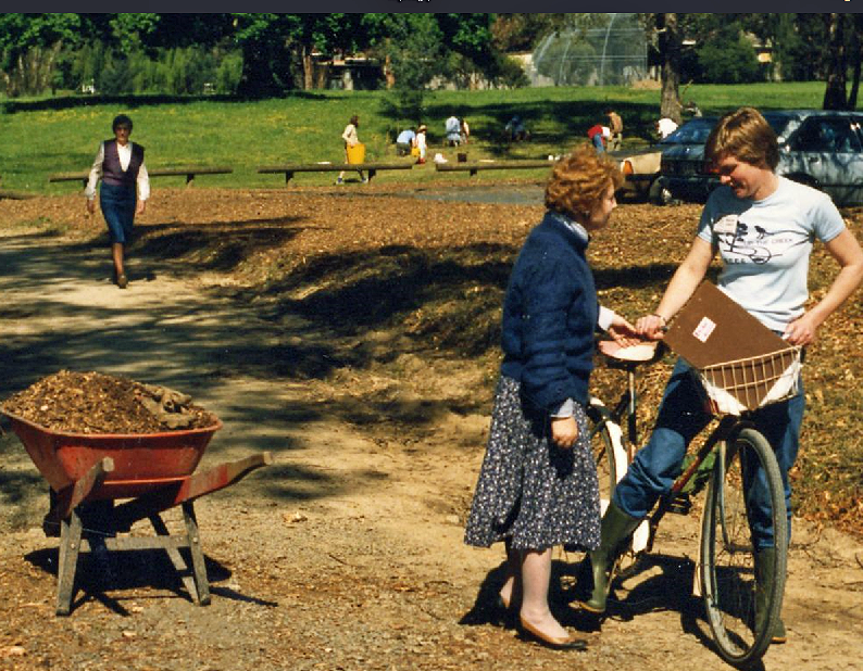 Back in the old days, Megan’s role in some of the major working bees was sometimes to act as Communications Director – aka bicycle courier between groups – relaying needs and other information via her trusty, pre-computer clipboard. Obviously, all this was before the times of mobile phones, e-bikes and even bicycle helmets!
