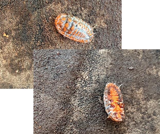 Cath’s find of the Monophlebulus is in the Pseudococcidid family (like Mealy Bugs). They are sap suckers and have an interesting life cycle. When they mature, the female becomes sedentary and the male is smaller, thinner and blue/purple in colour – and can fly. He mates with the female who then incubates the eggs within her and they hatch out from her.