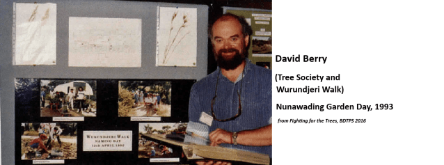 David has been recognised for his decades of service to conservation and the environment. He gave almost 40 years of service to Wurundjeri Walk in Blackburn South, through the former Wurundjeri Walk Advisory Committee and today’s Friends of Wurundjeri Walk.