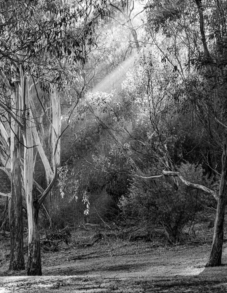 We don’t often see the Straw-necked Ibis in the park (NOT the “bin chicken”). We’ve also had reports of more Eastern Spinebills (reported last month) in Furness Park. Regarding the shafts of light, Pat, one of our bird watching leaders, recalls that a friend’s brother (an English vicar) used to call them ‘holy beams’.