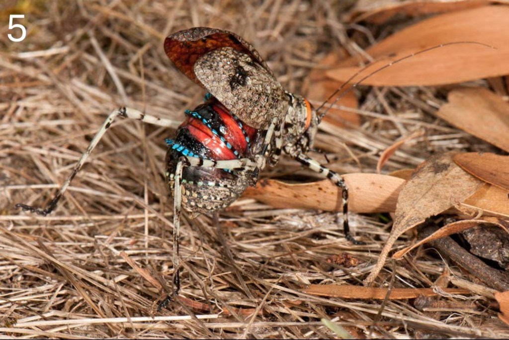 - Mountain Katydid (Acripeza reticulata) – famous for displaying colours to warn and repel predators.