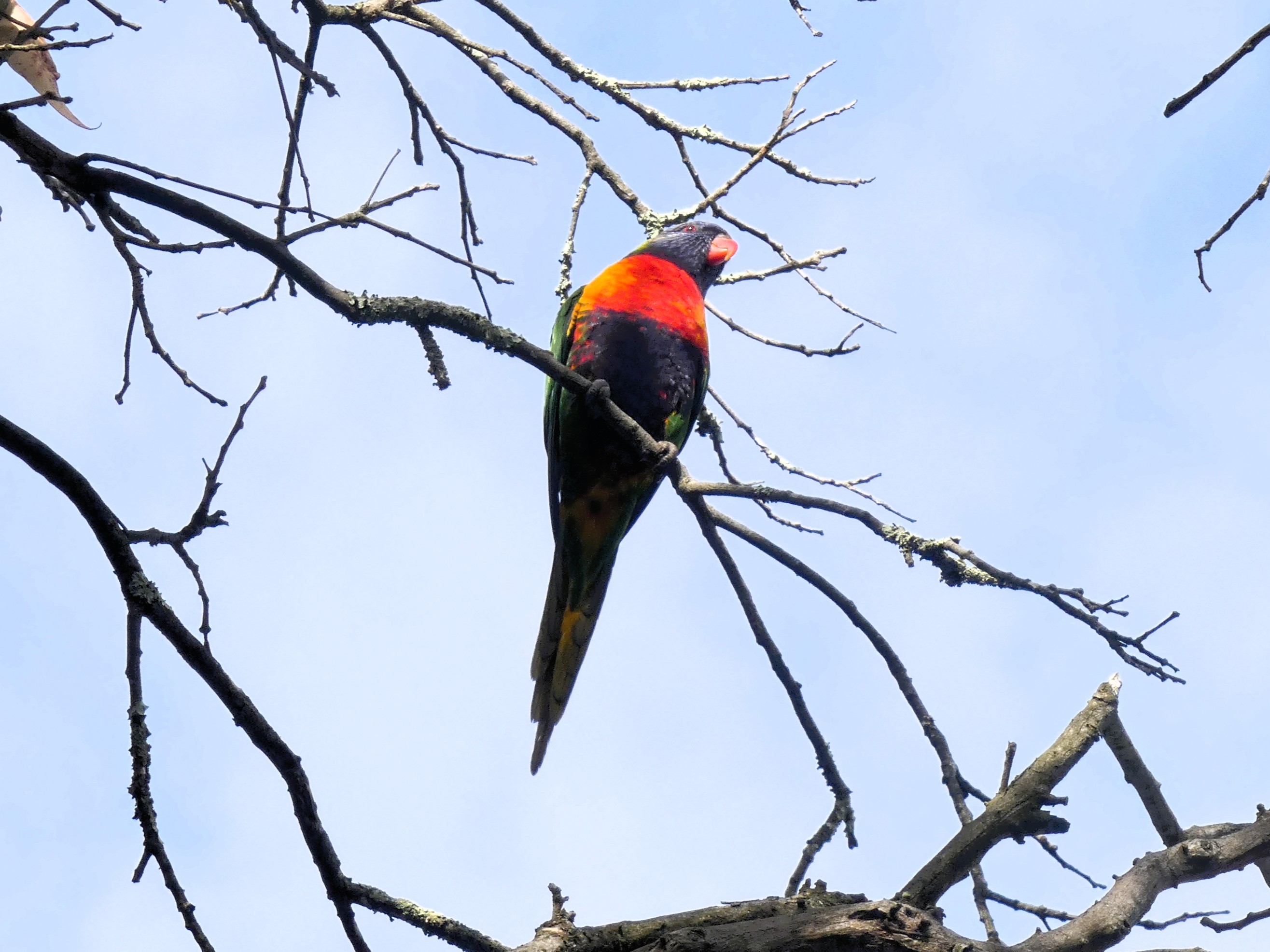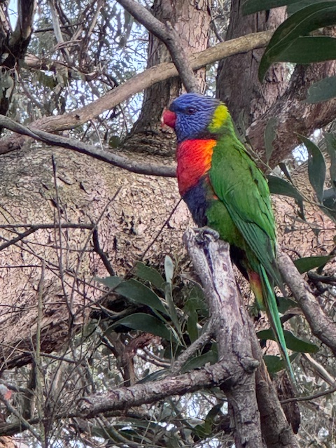 Along the creek, we spotted a Chestnut Teal, a pair of Wood Ducks, and a Pacific Black Duck mother with two ducklings paddling upstream. A show-stopping moment came when a Pied Cormorant glided in for a perfect landing on the rocks near the Laurel Grove bridge, followed by what looked like a double wave to our group! Other birds seen in abundance included Rainbow Lorikeets, Eastern Rosellas, Pied Currawongs, King Parrots, Galahs, Magpies and Kookaburras to name more than a few (see images from our amazing photographers).