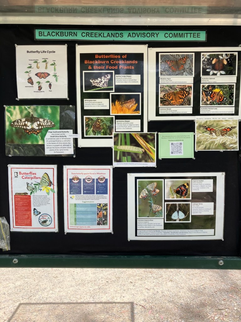 Butterflies play an important role in the health of the Blackburn Creeklands, acting as both pollinators and indicators of a thriving ecosystem. As they move between native plants, butterflies help with pollination, supporting plant reproduction and biodiversity. Their presence signals good habitat quality, as butterflies are sensitive to changes in vegetation, water quality and climate. Caterpillars also form a vital part of the food web, providing nourishment for birds, reptiles and other insects. By protecting native plants and habitats in the Creeklands, we help ensure butterflies continue to flourish, contributing to a resilient, colourful and balanced natural environment for everyone to enjoy. For more specific info, please visit our website: https://blackburncreeklands.org/fauna-and-flora/our-butterflies/