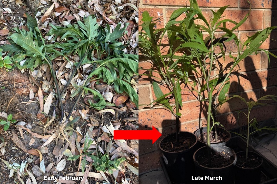 Unfortunately, back in early February, we noticed a few self-seeded plants had been pulled out so we called in the plant doctors to help revive them. After some CPR and TLC we managed to bring them back to life and look forward to planting them out at one of our four designated community working bees (CWBs) over the coming months.