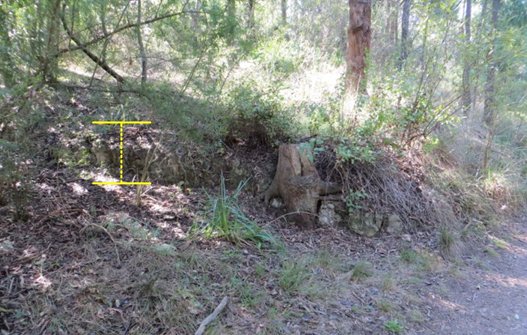 The cutting is quite low – only 30-40 cm facing East. If you look towards the creek, you’ll see that the fill was spread on the creek-side of the track raising it slightly. Obviously, the creek must have been much shallower then – flows and erosion increased with development to the east.