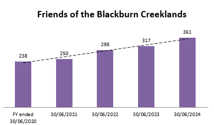 Friends of the Blackburn Creeklands are people who value the Creeklands and who would like to receive notification of events and issues of interest via e-mail. We currently have about 360 Friends registered.